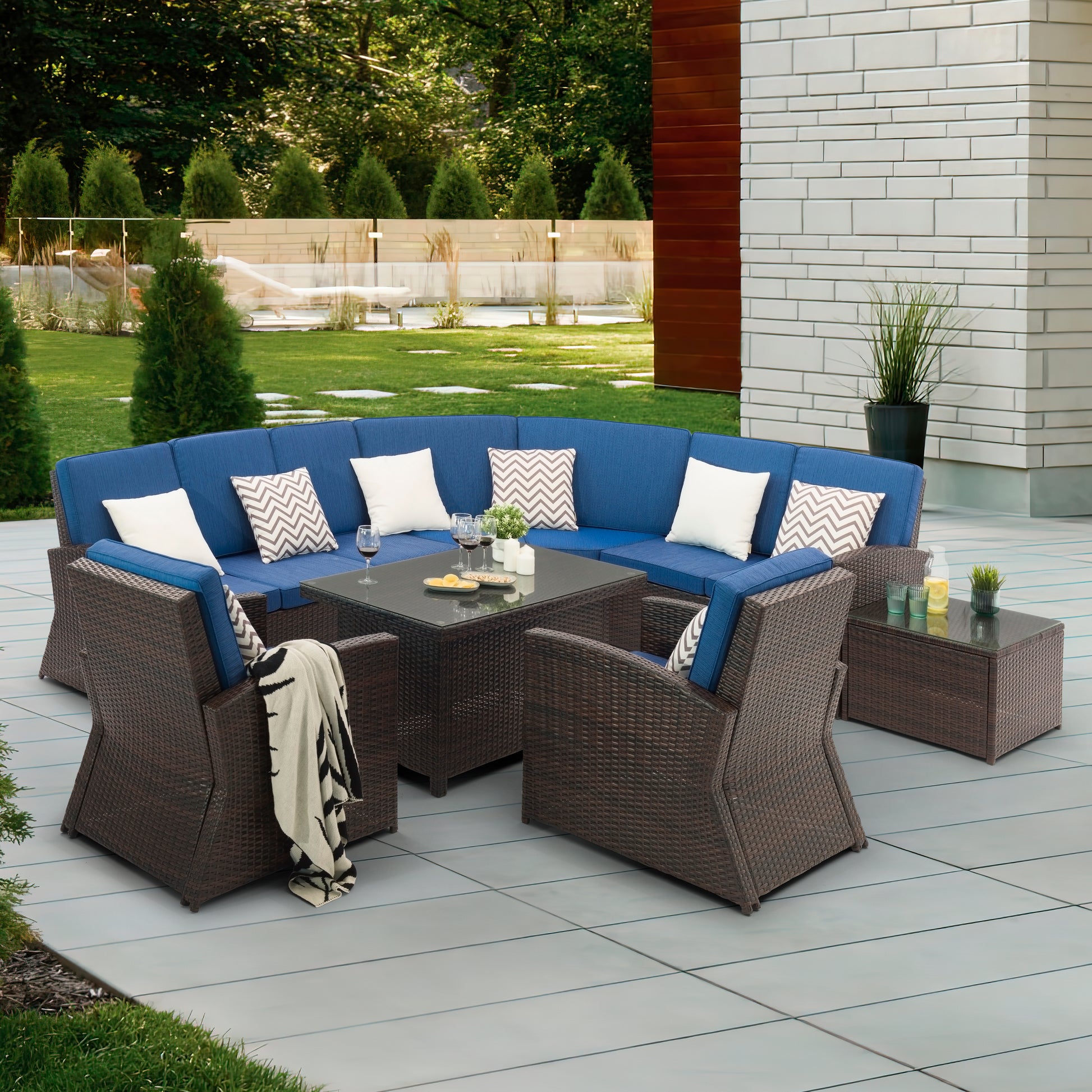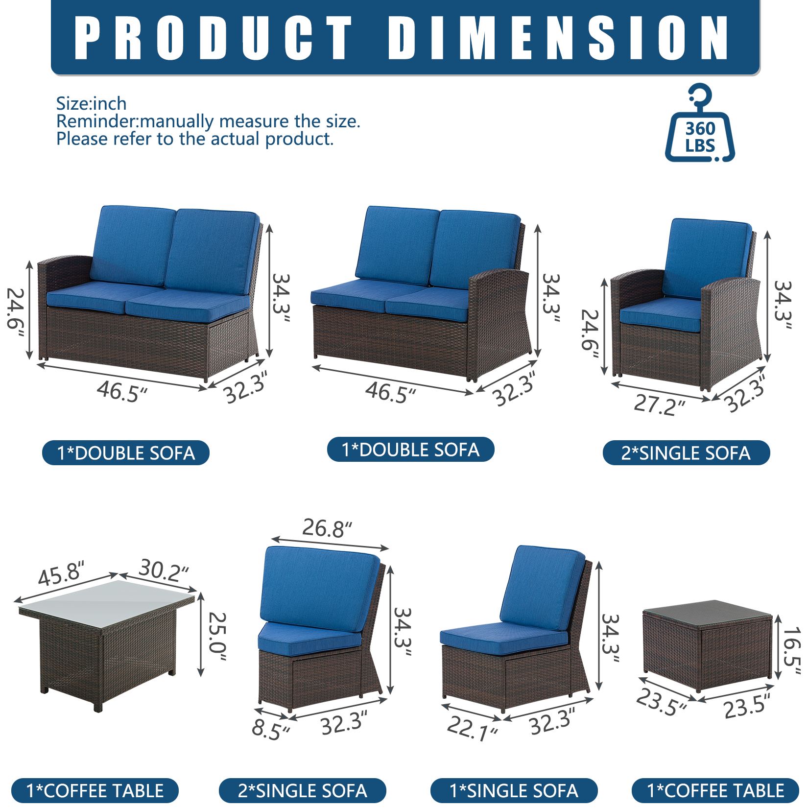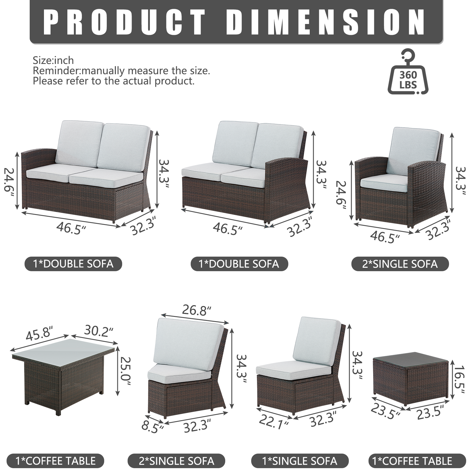 - [7 Pieces Set Includes] - It comes with 2 x loveseat, 2 x corner sofa ,1 x Rattan Wicker table,1 x coffee table,1 x tempered glass top and 12 x cushions (Assembly Required)