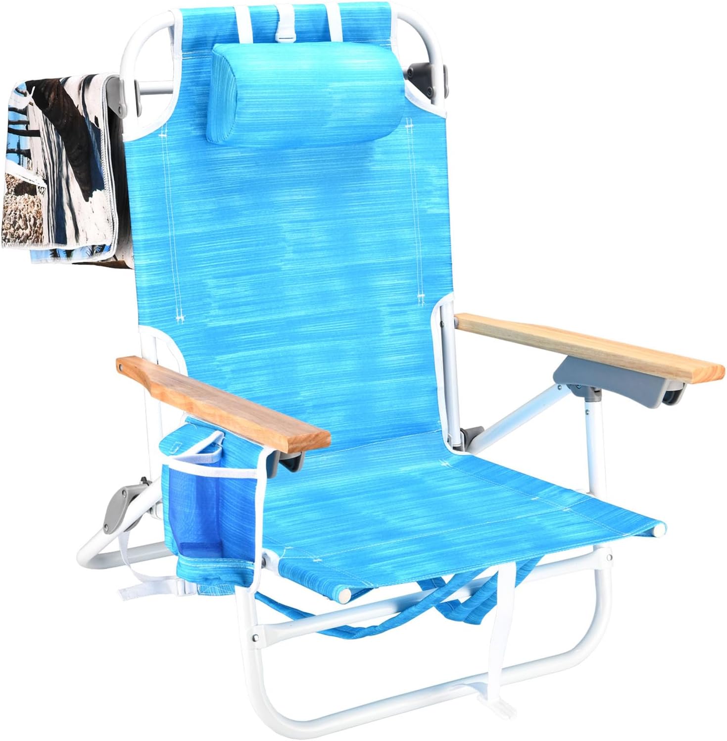 - ✨Beach Backpack Chair with Adjustment Backrest: The folding beach chair offers 5 reclining positions, including lying flat, and can be adjusted by simply lifting the handrail, allowing you to find the most comfortable angle for sunbathing, reading, or snoozing.