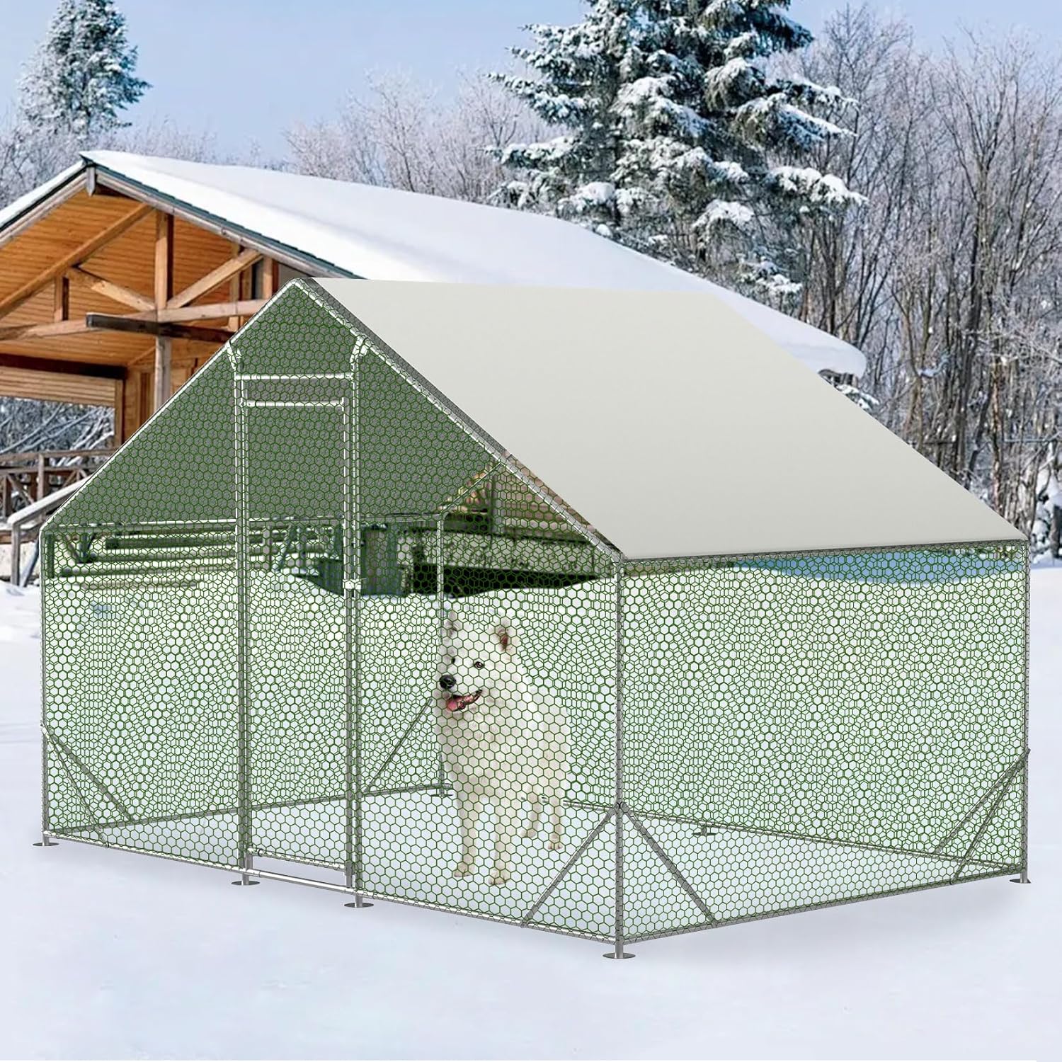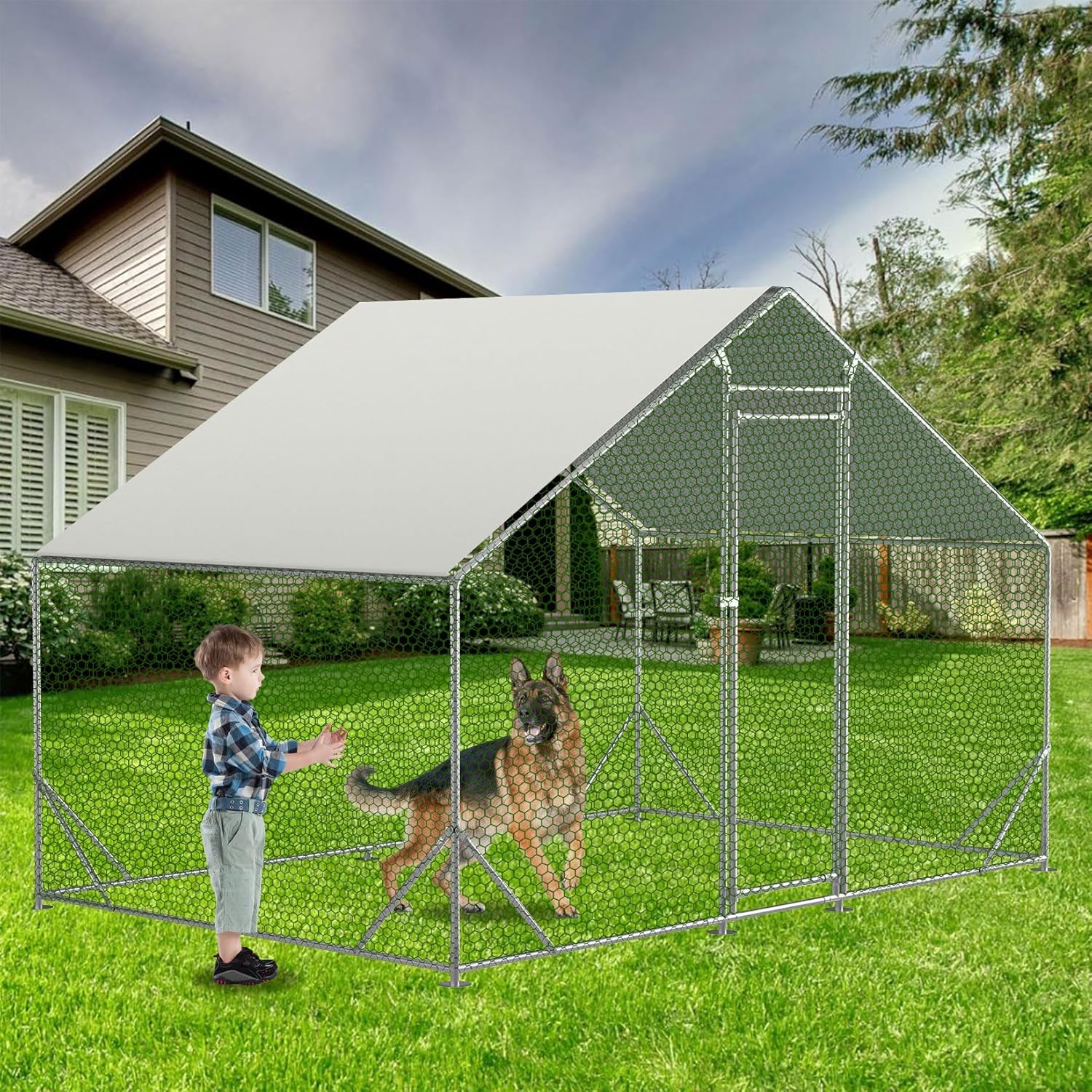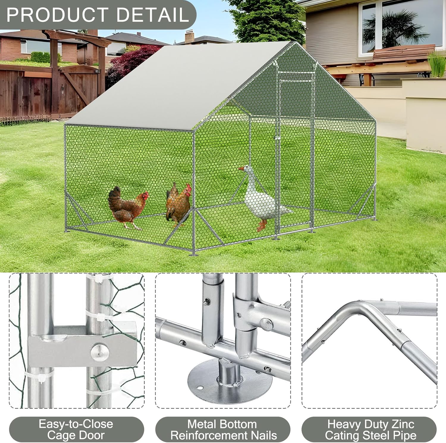 - 【Easy to assemble】The frame of chicken coop is designed with spring clasp connect allows for easy assembly. The spring clasp design requires no-welding for your quick assembly with this large metal chicken run. You can wrap the frame with the provided wire mesh roll and finally put up the tarp on the top. To follow the instructions step by step, you can easily understand the installation with a complete set of components and simple instructions we offered.