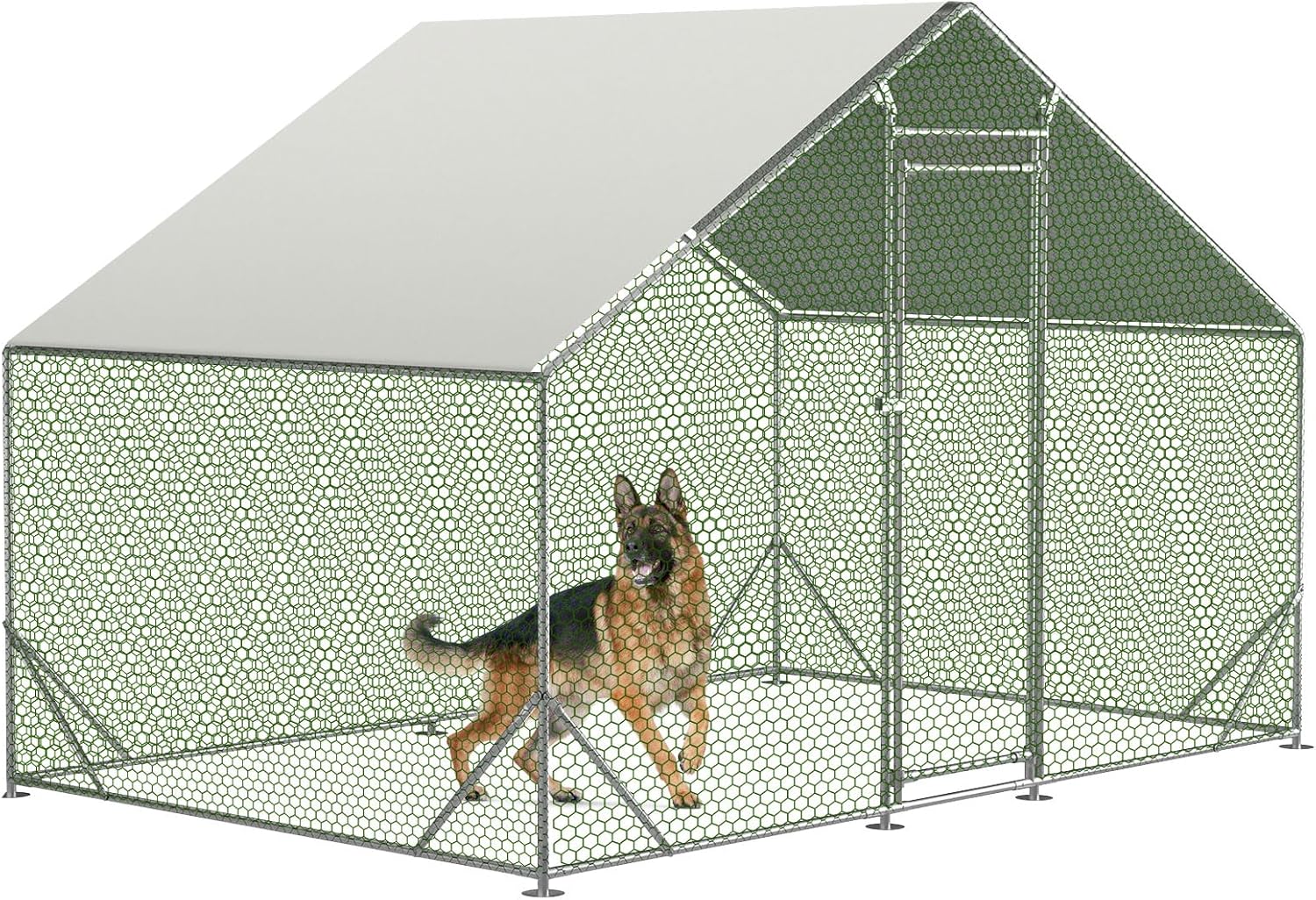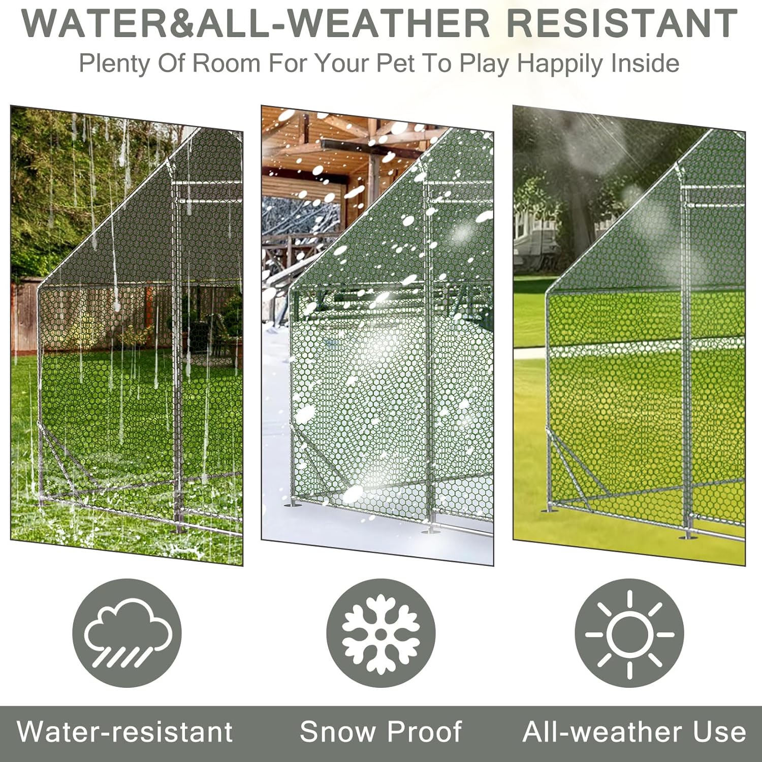 - 【Intensive Wire Mesh& Removable PE Cover】Plastic-dipped hexagonal wire mesh can prevent animals from being lost and keep damage from enemies. It is coated with PVC on the outside, secure for the chickens' touch and grip. Walk in chicken run with water resistant roof cover suitable for outdoor use from sunny to rainy days,can protect your poultry from sun exposure and other outdoor elements.