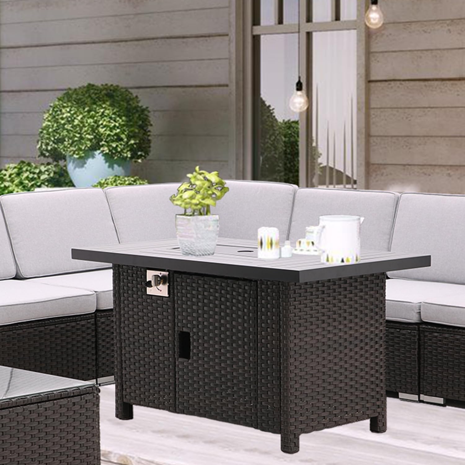 - 🔥High-quality handwoven and design: High-quality weather-resistant PE rattan is tightly woven around a sturdy, galvanized iron frame, to keep patio fire pit strongly secured. Patio fire pit table has a aluminum top, with lave rock, which is designed with fire pit center cover, easy to clean. The bottom of the firepit is made of a galvanized iron surface to insulate the pit and keep it from being scalded when removing the gas pipe.