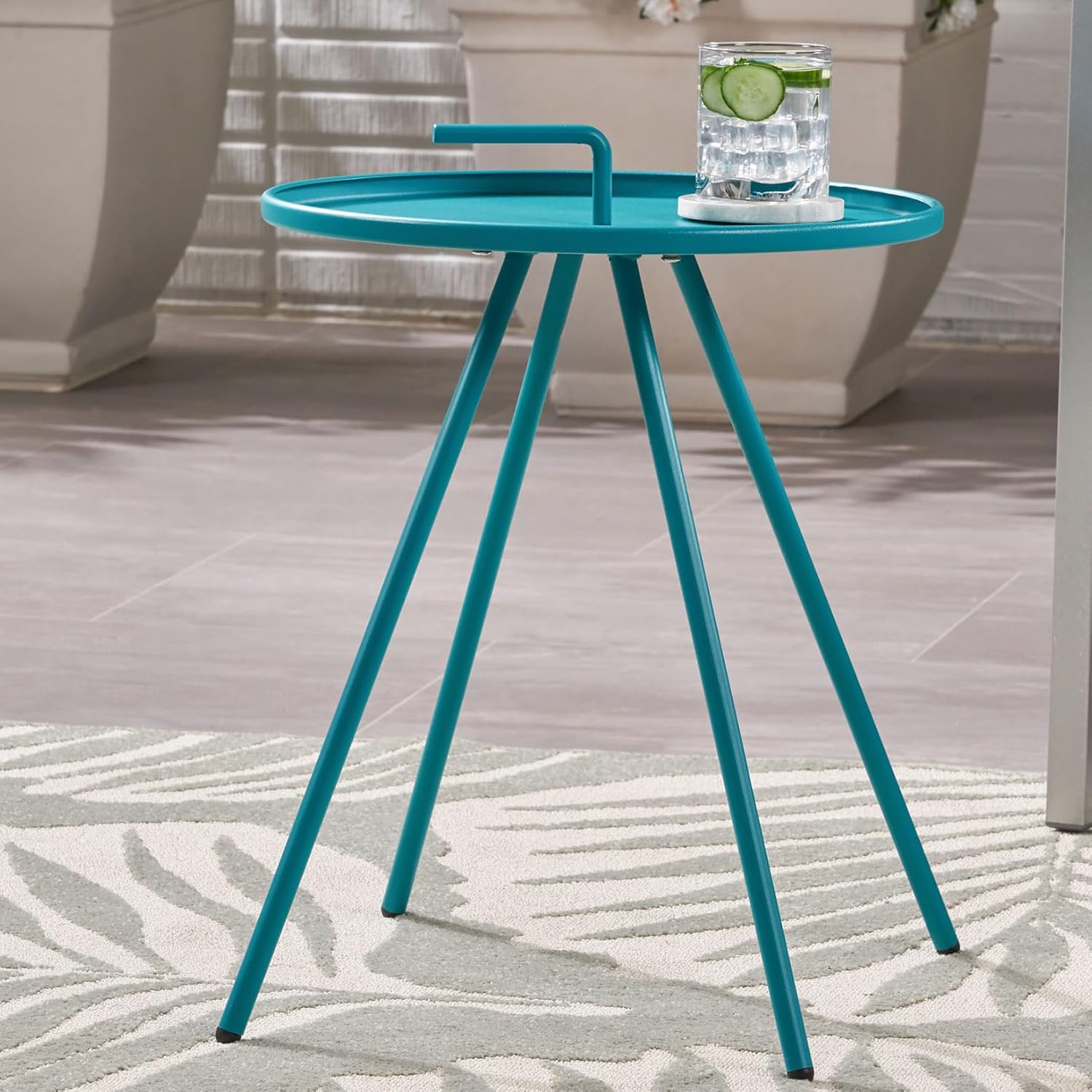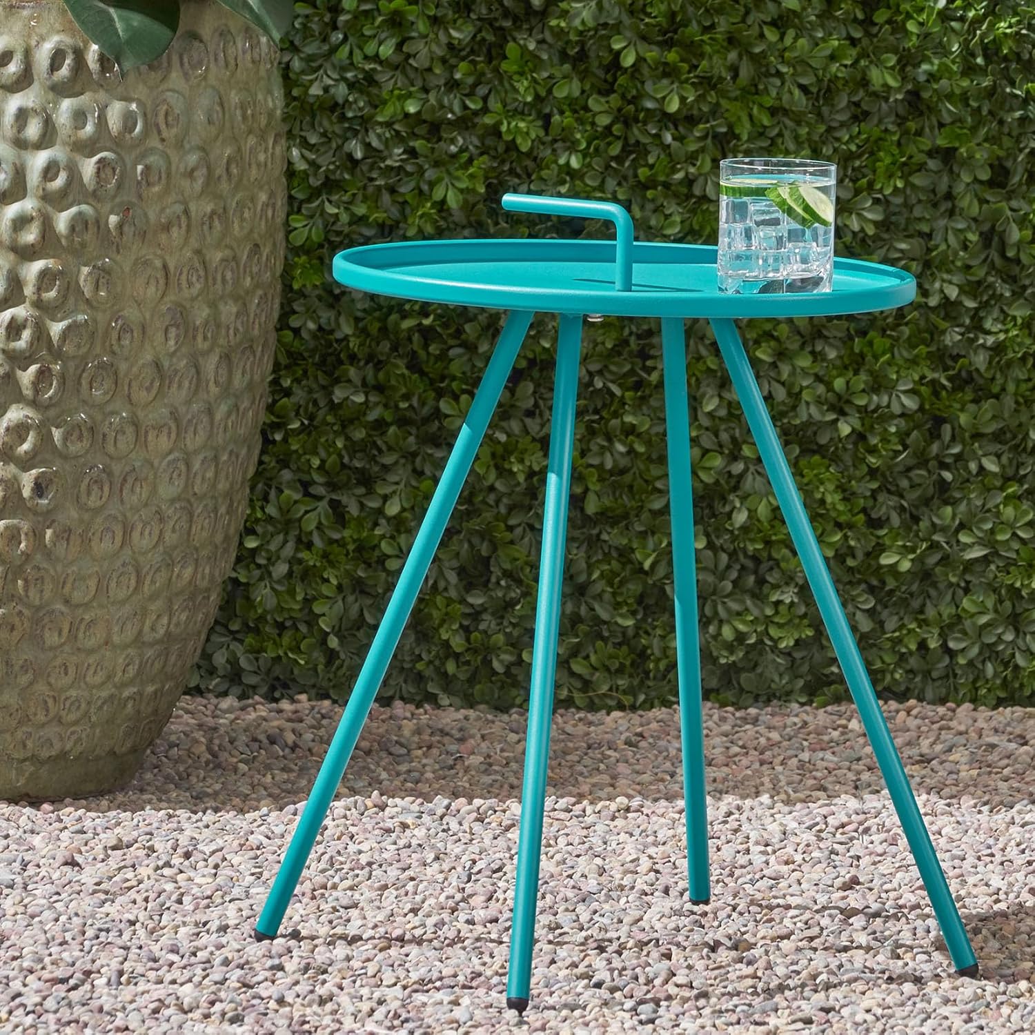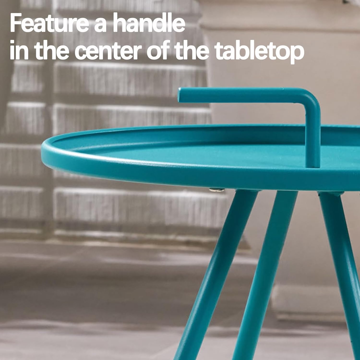 - OUTDOOR SIDE TABLE WITH A HANDLE: This side table features a handle in the center of the tabletop to create a unique design. This is specifically created to emphasize the table’s portability, allowing this accessory to be easily transported wherever you need.