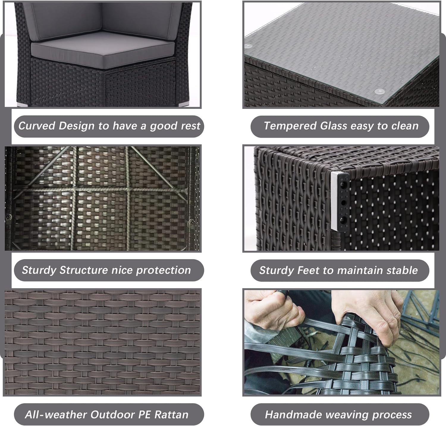 - 🛋️Easy to Assemble and Boxes: Outdoor sectional PE rattan set is easy to assemble. Our screws and washers are of uniform specifications, so there's no need to worry about not finding the correct screws. You can refer to the installation instrcution or video. All the hardware and necessary tools are included. Replace damaged parts and missing parts free of charge. Patio Sofa Set will be shipped with multiple boxes, which may be delivered at different times. Please be patient to wait.