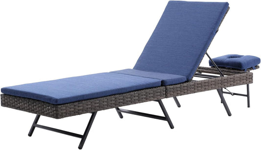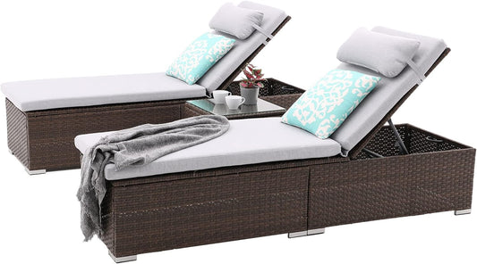 3 Pcs Patio Chaise Lounge with Coffee Table Cushion&Pillow